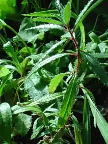 Forsskaolea angustifolia is a small shrub or perennial herb. The leaves of the plant are alternate, with dentate, prickly margins, and is densely lanate beneath, with stipules present. Its flowers are monoecious. Its inflorescences are axillary, small, and pinkish, and male flowers have one stamen.