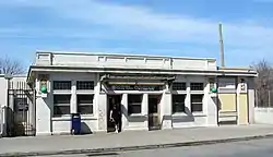 This open-cut station opened on June 22, 1915.[1] It has four tracks and two side platforms, but the two center express tracks are not normally used. The northbound platform has metal canopies while the southbound platform has beige concrete walls, columns, and roof (prior to renovation, the columns were blue-green).