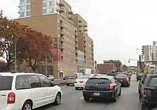 After crossing under the Gowanus Expressway viaduct into Bay Ridge, the arterial boulevard gives way to a four-lane street bordered by four- to five- story apartment buildings until it reaches Shore Road and the Belt Parkway under the Verrazano Narrows Bridge.[2]