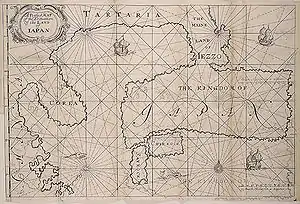 ![]() A map of Japan in François Caron's "A True Description of the Mighty Kingdoms of Japan and Siam". | |