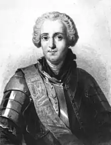 François-Gaston de Lévis, Duc de Lévis (20 August 1719 – 20 November 1787), styled as the Chevalier de Lévis until 1785, was a nobleman and a Marshal of France. He served with distinction in the War of the Polish Succession and the War of the Austrian Succession. During the Seven Years' War, he was second-in-command to Louis-Joseph de Montcalm in the defense of New France and then, after the surrender of New France in 1760, he served in Europe. After the war, he was appointed Governor of Artois, and in 1783 he was made a Marshal of France.