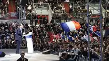 Hollande's presidential campaign was managed by Pierre Moscovici and Stéphane Le Foll, a member of Parliament and Member of the European Parliament respectively.[32] Hollande launched his campaign officially with a rally and major speech at Le Bourget on 22 January 2012 in front of 25,000 people.[33][34] The main themes of his speech were equality and the regulation of finance, both of which he promised to make a key part of his campaign.[34]