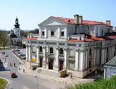 The greatest changes occurred during the Partitions of Poland in 1784, after the takeover of the city by the Austrians, when the order was suppressed.[1][5] During the period of modernization in the Zamość Fortress under Russian rule, the church building was turned into a military store.[2] The interior was divided into tiers, the bell tower and the monastery were torn down slightly later.[1][2] The most significant changes in the building's outer appearance occurred in 1887, when the roof was lowered, the high peaks were pulled down and the vaulting inside the church was changed into a simple slab.[4]