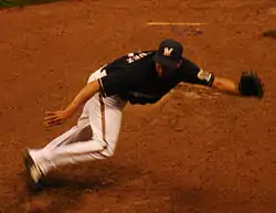 On July 12, 2011, immediately following the All-Star Game, Rodríguez was traded to the Milwaukee Brewers along with cash, for Adrian Rosario and Danny Herrera. The Associated Press noted the Brewers had two potential closers in Rodríguez and their existing closer, John Axford.[21] Rodríguez expressed his unhappiness in September to being used as the setup man to Axford.[22] Axford finished the season with a streak of 43 consecutive save opportunities converted.[23] In 31 games for the Brewers, Rodríguez was 4–0 with a 1.86 ERA.[1] Overall for the 2011 season, he was 6–2 with a 2.64 ERA in 73 appearances. He had 23 saves, all with the Mets.[1] Through 2011, he was 4th among all active pitchers in career saves (291) and games finished (445), and 8th in fielding percentage (.970).[1]