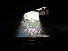 The Freedom Tunnel is the name given to the railroad tunnel on the West Side Line under Riverside Park in Manhattan, New York City. Currently used by Amtrak trains to and from Pennsylvania Station, it got its name because the graffiti artist Chris "Freedom" Pape used the tunnel walls to create some of his most notable artwork.[1][2] The name may also be a reference to the former shantytowns built within the tunnel by homeless populations seeking shelter and freedom to live rent-free and unsupervised by law enforcement.[3] The tunnel runs approximately 2.6 miles (4.2 km), from 72nd Street to 124th Street.[4]