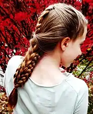 The phrase "French braid" appears in an 1871 issue of Arthur's Home Magazine, used in a piece of short fiction ("Our New Congressman" by March Westland) that describes it as a new hairstyle ("do up your hair in that new French braid").[2] However, no visual illustrations are provided for that context, making it impossible to tell whether it refers to the same hairstyle described above.