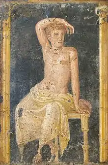 The first known Egyptian fresco was found in Tomb 100 at Hierakonpolis, and dated to c.3500–3200 BC. Several of the themes and designs visible in the fresco are otherwise known from other Naqada II objects such as the Gebel el-Arak Knife. It shows the scene of a "Master of animals", a man fighting against two lions, individual fighting scenes, and Egyptian and foreign boats.[6][7][8][9][10] Ancient Egyptians painted many tombs and houses, but those wall paintings are not frescoes.[11]