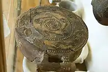 There are two frying pans very similar to the example from Paros in form and decorations; one of unknown provenance in the Benaki Museum, Athens[4] and a fragmentary example in the National Archaeological Museum of Athens, excavated by Christos Tsountas at Kato Akrotiri on Amorgos in 1898.[5]