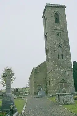 The existing ruins are of a 17th-century Church of Ireland. The tower was added in 1790 but the church was destroyed by fire in 1870.
