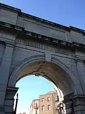 The construction of the arch coincided with a time of political and social change in Ireland, and the colonial and imperial background to the dedication were anathema to a burgeoning nationalist movement – who labelled the structure "Traitor's Gate".[9][10][11] Though damaged in a cross-fire between the Irish Citizens Army and British troops during the 1916 Easter Rising,[8][12] the arch remains "one of the few colonialist monuments in Dublin not blown up" in Ireland's post-independence history.[9][11]