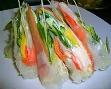 Chefs within Asian fusion restaurants combine the various cuisines of different Asian countries, have become popular in many parts of the United States and United Kingdom. Often featured are East Asian, Southeast Asian, and South Asian dishes alongside one another and offering dishes that are inspired combinations of such cuisines.[2] California cuisine is considered a fusion culture, taking inspiration particularly from Italy, France, Mexico, the idea of the European delicatessen, and East Asia, and then creating traditional dishes from these cultures with non-traditional ingredients - such as California pizza. One major example is Oceanic cuisine, which combines the different cuisines of the various island nations.[3] In the United Kingdom, fish and chips can be seen as an early fusion dish due to its marrying of ingredients stemming from Jewish, French, and Belgian cuisines.[4][5] Filipino cuisine is also sometimes characterized as the "original Asian fusion cuisine", combining native culinary traditions and ingredients with the very different cuisines of Spain, Latin America, China, and the United States, among others, due to its unique colonial history.[6]
