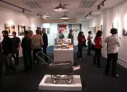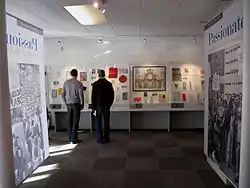 In addition to the larger shows in its main and front galleries, The GLBT Historical Society Museum mounts temporary exhibits displayed for approximately one month each, most consisting of a single display case devoted to a timely topic or significant anniversary in San Francisco LGBT history. Eight such temporary exhibits took place during 2011.[46]