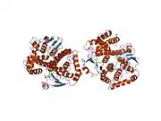 - Luo JK, Hornby JA, Wallace LA, et al. (2003). "Impact of domain interchange on conformational stability and equilibrium folding of chimeric class micro glutathione transferases". Protein Sci. 11 (9): 2208–17. doi:10.1110/ps.0208002. PMC 2373595. PMID 12192076.
