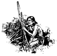 The next morning, at breakfast time, three Apaches were seen running through the surrounding pine trees. Immediately breakfast was stopped and the men saddled their horses. At this time, a shower of arrows rained down upon the Confederates from about thirty Apaches who had surrounded the camp. The four dismounted and took cover behind the pines and then attempted to shoot their muskets. To much surprise, all four of the weapons failed to fire. This suggests that either the Apaches had tampered with the muskets during the night or mountain dew had dampened their gunpowder.
