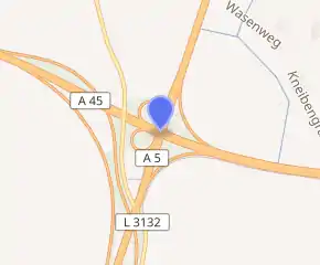 The Gambacher Kreuz (Gambach interchange) is a cloverleaf interchange in Hesse, Germany where the A5 Autobahn from Basel to Bad Hersfeld intersects the A45 between Dortmund and Aschaffenburg.[1] It constitutes a node in the primary route between the Rhein-Main metropolitan area and the eastern end of the Ruhr valley.