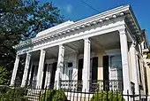 - Claiborne Cottage, 2727 Prytania Street, a raised, center-hall, Greek Revival cottage, built in 1857 by John Vittie for Sophronie Claiborne Marigny, daughter of Louisiana's first Governor, Lady of French Queen Amelie's court, and wife of Mandeville de Marigny, a prominent political and military figure. After several subsequent owners, the Society of Redemptorists purchased the cottage in 1923 with the intention of building a church in its place. Instead, the structure served as Bon Secours Grammar School 1923–1925, Redemptorist High School 1925–1929, Sisters of Mercy Convent 1929–1953, and Provincial House of the Redemptorist Vice Provincialate 1953–1955. The house was restored as a private residence in 1980. In 1995 it was acquired by the Rice family. (Marker by Orleans Parish Landmarks Commission, 1995)[15]