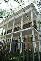 - Mayor Isaac W. Patton House, 1527 Washington Avenue, described in 1859 as "a handsome cottage residence," this Greek Revival house was erected for Lothrop Lewis Smith who purchased the site in 1853. It was his residence until he left New Orleans in 1859 and sold the house in 1861 to Mrs. Adolphe Jerome Odier. From 1873 until his death in 1890, it was the home of Isaac W. Patton, mayor of the City of New Orleans, 1878–1880. The entire square was sold in 1832 to H.W. Hills and William Lord Roberson by Matthew Morgan, Samuel J. Peters, Levi Peirce and William H. Chase, who in that year subdivided the Livaudais Plantation as Faubourg Livaudais, a part of the city of Lafayette that was annexed to the city of New Orleans in 1852. (Marker by New Orleans Landmarks Commission, 1985)[26]