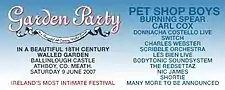 The 2007 event was also a one-day affair and took place again at Ballinlough Castle in Athboy, County Meath on Saturday 9 June from 2 p.m. until 2 a.m.[3][4] It was headlined by Pet Shop Boys, Burning Spear, Carl Cox and Hot Chip.[5]