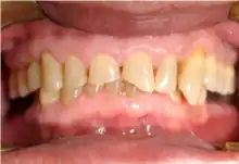 Acid reflux into the mouth can cause breakdown of the enamel, especially on the inside surface of the teeth. A dry mouth, acid or burning sensation in the mouth, bad breath and redness of the palate may occur.[19] Other not so common symptoms of GERD include difficulty in swallowing, water brash which is flooding of the mouth with saliva, chronic cough, hoarse voice, nausea and vomiting.[18]