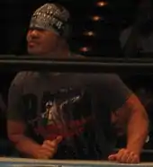 Gedo won the FMW Brass Knuckles Tag Team Championship not with Jado but with Koji Nakagawa when they defeated Masato Tanaka and Tetsuhiro Kuroda on June 13, 1999. Gedo would leave FMW in 2001 along with Masato Tanaka, Jado, Hideki Hosaka, and Kaori Nakayama with the group becoming freelancers with Gedo mostly working in Michinoku Pro. Gedo along with Jado would eventually return to New Japan and win the IWGP Junior Heavyweight Tag Team Championship when they defeated Jyushin Thunder Liger and El Samurai on July 20, 2001.[10] Gedo had a fierce rivalry with Liger after Jado and Gedo made a surprise appearance in NJPW when they both pulled Liger's mask off.[4] Jado and Gedo won the IWGP Junior Heavyweight belts for a second time in 2003 after again defeating Liger and Samurai.[11] In 2007, Gedo was offered a contract by World Wrestling Entertainment (WWE), but turned it down because he would have been required to portray a stereotypical Japanese character.[12] In July 2007, Gedo and Jado joined the Great Bash Heel (GBH) faction.[13][14] The tag team would compete in the 2007 G1 Tag League, but failed to win, with a final tally of 6 points.[15] In April 2009 Gedo and Jado left GBH and became founding members of the Chaos stable.[16] On November 13, 2010, Jado and Gedo returned to the top of New Japan's Junior Tag Team division by defeating their Chaos team mates Davey Richards and Rocky Romero in the finals of a five-day-long tournament to win the 2010 Super J Tag League.[17] As a result of their victory, Gedo and Jado received a match for the IWGP Junior Heavyweight Tag Team Championship, which took place at a Dramatic Dream Team (DDT) event on December 26, 2010, where they were defeated by the defending champions, the Golden☆Lovers (Kenny Omega and Kota Ibushi).[18] At the end of 2011, the Wrestling Observer Newsletter named Gedo and Jado the bookers of the year. They have won the award three more times since then.