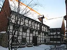 The large building on the corner of Gelber Stern and Brühl is a former hospital which was built in a classicist style 1833-1840. Today it is used as a priests' seminary. The oldest half-timbered house of Hildesheim, which is used as a library today, can be visited in its inner court. It was built in a gothic style at the end of the 15th century.[4]