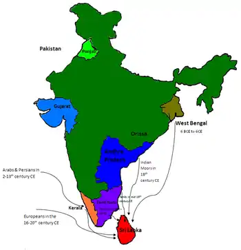 A study looking at genetic variation of the FUT2 gene in the Sinhalese and Sri Lankan Tamil population, found similar genetic backgrounds for both ethnic groups, with little genetic flow from other neighbouring Asian population groups.[11] Studies have also found no significant difference with regards to blood group, blood genetic markers and single-nucleotide polymorphism between the Sinhalese and other ethnic groups in Sri Lanka.[12][13][14] Another study has also found "no significant genetic variation among the major ethnic groups in Sri Lanka".[15] This is further supported by a study which found very similar frequencies of alleles MTHFR 677T, F2 20210A & F5 1691A in South Indian Tamil, Sinhalese, Sri Lankan Tamil and Moor populations.[7]