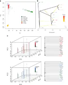 Turkish genomic variation, along with several other Western Asian populations, looks most similar to genomic variation of South European populations such as southern Italians.[1] Western Asian genomes, including Turkish ones, have been greatly influenced by early agricultural populations in the area; later population movements, such as those of Turkic speakers, also contributed.[1] The only whole genome sequencing study of Turkish genetics (on 16 individuals) concluded that the Turkish population forms a cluster with Southern European/Mediterranean populations, and the predicted contribution from ancestral East Asian populations (presumably Central Asian) is 21.7%.[2] However, that is not a direct estimate of a migration rate, due to reasons such as unknown original contributing populations.[2] Moreover, the genetic variation of various populations in Central Asia "has been poorly characterized"; Western Asian populations may also be "closely related to populations in the east".[1]