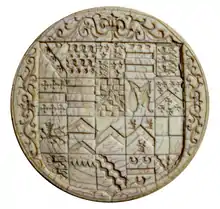George Carey, 2nd Baron Hunsdon KG (1547 – 9 September 1603) was the eldest son of Henry Carey, 1st Baron Hunsdon and Anne Morgan. His father was first cousin to Elizabeth I of England. In 1560, at the age of 13, George matriculated at Trinity College, Cambridge.[1] In 1566 he accompanied the Earl of Bedford on an official mission to Scotland, to attend the baptism of the future King James VI.
