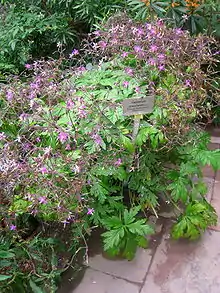 Geranium reuteri, the giant geranium, is a species of flowering plant in the family Geraniaceae, native to the Canary Islands and Madeira. It was known for many years under the name Geranium canariense. In Spanish, it is called pata de gallo.[3]