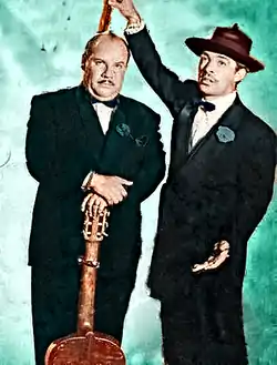 Germán Genaro Cipriano Gómez Valdés de Castillo (19 September 1915 – 29 June 1973), better known as Tin-Tan, was a Mexican actor, singer and comedian who was born in Mexico City but was raised and began his career in Ciudad Juarez, Chihuahua. He often displayed the pachuco dress and employed pachuco slang in many of his movies, some with his brothers Manuel "El Loco" Valdés and Ramón Valdés. He made the language of the Border Mexican known in Spanish as Fronterizos pachucos famous in Mexico. A "caló" based in Spanglish, it was a mixture of Spanish and English in speech based on that of Mexicans on the Mexican side of the border. Specifically Ciudad Juarez