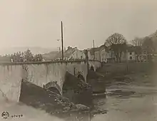 The next day, while French troops were still at a distance from the German frontier, Germany launched a full invasion.[7] German soldiers began moving through south-eastern Luxembourg, crossing the Moselle River at Remich and Wasserbillig, and headed towards the capital, Luxembourg City.[8] Tens of thousands of German soldiers had been deployed to Luxembourg in those 24 hours (although the Grand Duchy's government disputed any precise number that was suggested).[9] Grand Duchess Marie-Adélaïde ordered that the Grand Duchy's small army, which numbered under 400,[10] not to resist. On the afternoon of 2 August she and Eyschen met the German commander Oberst Richard Karl von Tessmar on Luxembourg City's Adolphe Bridge, the symbol of Luxembourg's modernisation.[11] They protested mildly, but both the young Grand Duchess and her aging statesman accepted German military rule as inevitable.[12]