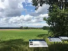 Admiral von Friedeburg went on to sign the German Instrument of Surrender preparatory to the ending World War II in Europe on 7 May at Reims in France and signed again on 8 May with the Supreme High Command of the Red Army, French and US representatives in Berlin. Both Admiral von Friedeburg and General Kinzel committed suicide in the weeks following the surrender; von Friedeburg on 23 May 1945, and Kinzel on 25 June 1945.[8][9] After the war a monument was erected by the British on what they now called Victory Hill. The monument was dismantled in 1958 and rebuilt at the Royal Military Academy Sandhurst. Today the spot lies in an out-of-bounds military area and is not accessible to the public. In 1995 another monument was erected on the edge of the Timeloberg, outside the restricted area.[3] The last survivor of the negotiations was one of Montgomery's interpreters Derek Knee who died aged 91 in 2014.[10][11]