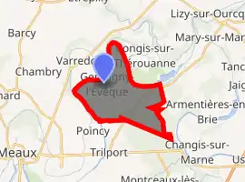 Germigny-l'Évêque is located 9.5 km Northeast of Meaux on the left bank of the river Marne.