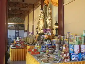The modern festival of Chung Yuan Putu or "Mid-origin Passage to Universal Salvation" owes its origins to both the Buddhist Ullambana (Deliverance) Festival and the Taoist Chinese Ghost Festival, both of which honor the spirits of the departed, and which have now been combined. Historically, families offer sacrifices of the newly harvested grain to departed ancestors on this day. In some parts of China, believers make small roadside fires where they burn paper money and other offerings to appease the restless spirits that have temporarily been released from the underworld.[24]