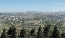 The earliest known mention of Gibeon in an extra-biblical source is in a list of cities on the wall of the Amun temple at Karnak, celebrating the invasion of Israel by Egyptian Pharaoh Shoshenq I (945–924 BCE).[11][13] Josephus placed Gibeon at 40 furlongs from Jerusalem.[14] The 10th-century lexicographer David ben Abraham al-Fasi, identified al-Jib with the ancient city Gibeon, which view was corroborated also by the Hebrew Lexicon compiled by Wilhelm Gesenius and Frants Buhl ("now al-Ǧīb").[15] However, the first scientific identification of al-Jib with the ancient Canaanite city of Gibeon was made by Edward Robinson in 1838. The remains of Gibeon were excavated in six expeditions from 1956 to 1962, led by the University of Pennsylvania archaeologist James B. Pritchard.[2][16][17]