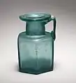 The earliest bottles or vessels were made by ancient man. Ingredients were melted to make glass and then clay forms were dipped into the molten liquid. When the glass cooled off, the clay was chipped out of the inside leaving just the hollow glass vessel.[4] This glass was very thin as the fire was not as hot as modern day furnaces. The blowpipe was invented around 1 B.C. This allowed molten glass to be gathered on the end of the blow pipe and blown into the other end to create a hollow vessel. Eventually, the use of a mold was introduced, followed by the invention of a semi-automatic machine called the Press and Blow. In 1904 Michael Owens invented the automatic bottle machine.[5]