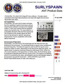 - Gallagher, Sean (May 14, 2014). "Photos of an NSA "upgrade" factory show Cisco router getting implant". Ars Technica. Retrieved August 3, 2014.