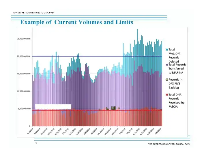 According to Boundless Informant, over 97 billion pieces of intelligence were collected over a 30-day period ending in March 2013. Out of all 97 billion sets of information, about 3 billion data sets originated from U.S. computer networks[118] and around 500 million metadata records were collected from German networks.[119]