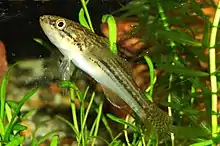 Gobiomorphus australis, the striped gudgeon, is a fish in the family Eleotridae, native to eastern Australia.[1] It can be found in a wide variety of habitats from clear streams with rapid currents to muddy stillwaters such as ponds and waterholes.[2] Juveniles are common in estuaries near rocks, submerged logs and among vegetation. They are good climbers and are able to clamber over wet rocky surfaces such as rapids and waterfalls.[3]