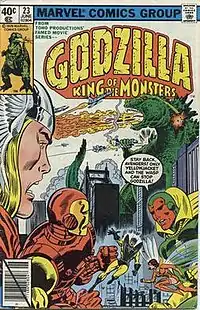 From 1977 to 1979, Godzilla starred in a 24-issue run of comics[1] written by Doug Moench, drawn by Herb Trimpe and published by Marvel Comics entitled Godzilla, King of the Monsters.[2] The series thrusts Godzilla completely into the Marvel Universe. Godzilla first appears by bursting out of an iceberg near Alaska.[3] Over the course of the series, he crosses the continental United States and eventually ends up in New York City.[4]