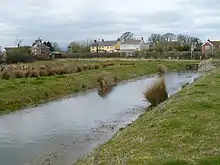 Together with the neighbouring parishes of Nash and Whitson, it is one of "The Three Parishes" which have long been a unit – geographical, socially, economically and ecclesiastically. All three parishes are typical of the Caldicot Levels. At the highest tides the village lies below sea-level. The entire area is drained by a vast network of inter-linking ditches or 'reens'.[3] A main drainage ditch, with an origin near Llanwern, known as "Monksditch" or "Goldcliff Pill"[4] passes through the village on its way to the sea. Local folklore maintains that the sides of the Monksditch are laced with smugglers' brandy.