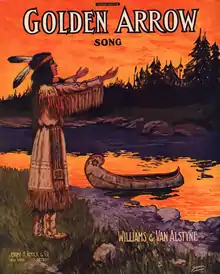 "Golden Arrow " is popular song published both as an intermezzo two-step and a ballad in 1909. The music was composed by Egbert Van Alstyne, with lyrics added by Harry Williams. The ballad is a love story between the unnamed son of a Chief Arrow-Bow and a maiden named Golden Arrow, both of the Sioux nation in Idaho.