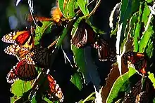 Bobcats can also be seen in the area.[32] Coyotes sometimes prey on small domestic pets.[33] Skunks sometimes spray, and often fall prey to cars, owls, dogs, and coyotes.[34] Raccoons can become neighborhood pests.[35] Opossums commonly inhabit neighborhoods.[36] Dogs and cats sometimes kill small animals. Monarch butterflies spend the winter in several eucalyptus groves on the Ellwood Mesa.[37] Bears and Mountain Lions live in the foothills and mountains around the town, but are rarely seen by residents.[38]