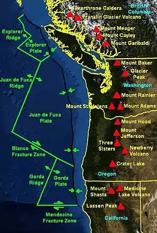 - "Juan de Fuca, Explorer and Gorda Plates". Americas:Tectonics. Retrieved 2017-06-07.