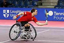 He has competed for Great Britain at the Summer Paralympics when tennis made its first appearance at Beijing 2008. He reached the quarter-finals in the singles in London 2012 as well as reaching the quarter-finals in the doubles.[3] He won Paralympic gold in the men's singles event at Rio 2016 and silver in the doubles event with partner Alfie Hewett, who he beat in the singles final.
