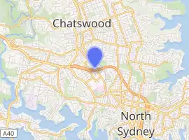 The Gore Hill Freeway is a 4-kilometre (2.5 mi) divided freeway located in Sydney, New South Wales, Australia. The freeway forms part of the M1, the Sydney Orbital Network, and the Highway 1 network. Construction of the freeway commenced in August 1988 as part of the Bicentennial Roads Program and opened to traffic on 26 August 1992.[2] The primary function of the freeway is to provide an alternative high-grade route from Artarmon to Lane Cove and to reduce traffic demands on the Pacific Highway throughout Sydney's lower north shore, bypassing St Leonards and Gore Hill.[1]
