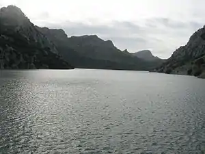 Gorg Blau is an artificial reservoir on the island of Majorca in the Balearic Islands, located in the valleys between Puig Major and Puig de Massanella. Since 1971 it has provided water to the city of Palma and the surrounding areas, along with its counterpart, the Cúber reservoir.