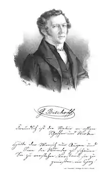 Bischoff was born in Dürkheim and studied botany under Wilhelm Daniel Koch, the author a major flora of Germany, in Kaiserslautern. He then went to the Academy of Fine Arts, Munich in 1819 and then studied botany in Erlangen from 1821. He began to teach in Heidelberg from 1824 and received a habilitation in 1825. He became a professor of botany in 1833 and directed the botanical garden in Heidelberg from 1839. He specialized in the liverworts and mosses coining the terms archegonium and antheridium.[1]