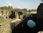 | Leeds Castle: Ruins of barbicans and dam | Leeds | Gate | Early to mid 13th century | 18 December 1985 | TQ8354153193 51°14′54″N 0°37′43″E | Ruins of two former barbican towers to the castle with remains of water mill within one. Causeways and bridges now replace the former drawbridges.[22] | 1060933 | ![]() Leeds Castle: Ruins of barbicans and dam |