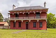 The original grantee William Graham died at Greenhills in September 1852 and was buried in the family cemetery. After his father's death, James Graham took over the running of the estate and, as executor of his father's will, divided the estate between the family members. James retained the original 100 acre grant and house, and he and his wife Mary (née Gardner) purchased more land at Greenhills and nearby. James and Mary had six children and it was soon apparent that the older house was too small for his growing family. James contracted Charles Moore, stonemason and bricklayer, and Willet Burrey, carpenter, of Nowra, to erect a new house on the estate. It was commenced in January 1860 and completed in May 1861. James was elected to the first Shoalhaven council in 1859 and became its first Mayor in 1860.[11] Graham's powerful neighbours, the Berrys, had opposed the formation of this municipal government.[12][1]